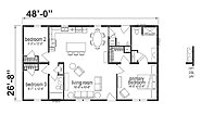 Beds: 3 Baths: 2 Sq Ft: 1280 W x L: 26′ 8″ x 48′ 0″